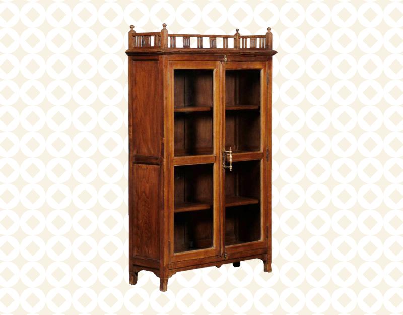 Versatile petit storage unit with sculptured wooden detail